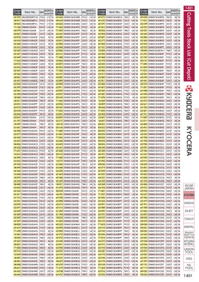 ORDERCODEITEMNO.OPTIONSMSRP(PERPIECE)ORDERUNITORDERCODEITEMNO.OPTIONSMSRP(PERPIECE)ORDERUNITORDERCODEITEMNO.OPTIONSMSRP(PERPIECE)ORDERUNITORDERCODEITEMNO.OPTIONSMSRP(PERPIECE)ORDERUNIT1-8311-831CUTTINGTOOLSSTOCKLIST(CUTDEPOT)KYOCERAISCARJAPANKYOCERASANDVIKDIJETTUNGALOYMAPALMITSUBISHIHITACHITOOLENGINEERINGMITSUBISHIMATERIALSUNIONTOOLOSGNSTOOL823-0248DNMG150408PQTN610¥83010771-8331DNMG150408PQTN620¥83010654-5599DNMG150408PSCA510¥1,05010652-9232DNMG150408PSCA515¥1,05010652-9241DNMG150408PSCA525¥1,05010654-5602DNMG150408PSCA530¥1,05010652-3846DNMG150408PSCA5515¥1,05010652-3854DNMG150408PSCA5525¥1,05010647-6953DNMG150408PSCA5535¥1,05010652-9259DNMG150408PTCA525¥1,05010140-8496DNMG150408TN-VTN60¥1,00010651-6955DNMG150408XFPV7010¥1,00010651-7447DNMG150408XFPV7025¥1,00010823-0147DNMG150408XFPV710¥92010771-6893DNMG150408XFPV720¥92010651-8699DNMG150408XFTN6010¥90010771-8373DNMG150408XFTN620¥83010652-9267DNMG150408XPCA525¥1,05010653-4783DNMG150408XPCA5515¥1,05010647-6961DNMG150408XPCA5525¥1,05010642-3574DNMG150408XPPV7020¥1,00010771-6877DNMG150408XPPV720¥92010647-6988DNMG150408XPPV90¥1,00010647-6996DNMG150408XPTN60¥1,00010651-8672DNMG150408XPTN6010¥90010652-9275DNMG150408XQCA525¥1,05010654-5611DNMG150408XQCA530¥1,05010647-7003DNMG150408XQCA5515¥1,05010652-3871DNMG150408XQCA5525¥1,05010647-7011DNMG150408XQPV7025¥1,00010771-6907DNMG150408XQPV720¥92010651-8711DNMG150408XQTN6010¥90010653-4805DNMG150408XSCA5515¥1,05010653-4813DNMG150408XSCA5525¥1,05010858-0257DNMG150408ZSCA315¥1,05010642-3345DNMG150408ZSCA4120¥1,05010647-7020DNMG150408ZSCA4505¥1,05010647-7038DNMG150408ZSCA4515¥1,05010652-9283DNMG150412CJCA515¥1,05010652-9291DNMG150412CJCA525¥1,05010647-7046DNMG150412CJCA5515¥1,05010641-6357DNMG150412CJCA5525¥1,05010652-9305DNMG150412CQCA515¥1,05010652-9313DNMG150412CQCA525¥1,05010654-5629DNMG150412CQCA530¥1,05010653-4821DNMG150412CQCA5515¥1,05010653-4830DNMG150412CQCA5525¥1,05010397-8052DNMG150412CQPV7025¥1,00010651-8648DNMG150412CQTN6010¥90010647-7054DNMG150412GSPV90¥1,00010653-4856DNMG150412GTCA5525¥1,05010652-9321DNMG150412HQCA515¥1,05010652-9330DNMG150412HQCA525¥1,05010654-5637DNMG150412HQCA530¥1,05010647-7062DNMG150412HQCA5515¥1,05010652-3919DNMG150412HQCA5525¥1,05010647-7071DNMG150412HQCA5535¥1,05010647-7089DNMG150412HQPV90¥1,00010651-8656DNMG150412HQTN6010¥90010653-4872DNMG150412HSCA5525¥1,05010858-0258DNMG150412KGCA310¥1,05010858-0259DNMG150412KGCA315¥1,05010858-0260DNMG150412KHCA310¥1,05010858-0261DNMG150412KHCA315¥1,05010858-0262DNMG150412KHCA320¥1,05010654-5645DNMG150412PGCA510¥1,05010654-5653DNMG150412PGCA530¥1,05010652-9348DNMG150412PPCA515¥1,05010652-9356DNMG150412PPCA525¥1,05010652-9364DNMG150412PQCA515¥1,05010652-9372DNMG150412PQCA525¥1,05010652-9381DNMG150412PSCA525¥1,05010652-3927DNMG150412PSCA5515¥1,05010647-7097DNMG150412PSCA5525¥1,05010647-7101DNMG150412PTCA5525¥1,05010647-7119DNMG150412PTCA5535¥1,05010858-0263DNMG150412ZSCA310¥1,05010858-0264DNMG150412ZSCA315¥1,05010647-6775DNMG150408CQTN6020¥90010647-6783DNMG150408GPCA5515¥1,05010647-6791DNMG150408GPCA5525¥1,05010647-6813DNMG150408GPPV90¥1,00010140-4326DNMG150408GPTN60¥1,00010652-9038DNMG150408GSCA525¥1,05010647-6821DNMG150408GSCA5515¥1,05010652-3773DNMG150408GSCA5525¥1,05010647-6830DNMG150408GSPV7020¥1,00010651-7421DNMG150408GSPV7025¥1,00010154-2826DNMG150408GSPV90¥1,00010652-9046DNMG150408GTCA525¥1,05010647-6848DNMG150408GTCA5515¥1,05010652-3790DNMG150408GTCA5525¥1,05010654-5505DNMG150408HQCA510¥1,05010652-9054DNMG150408HQCA515¥1,05010652-9062DNMG150408HQCA525¥1,05010654-5513DNMG150408HQCA530¥1,05010652-3803DNMG150408HQCA5515¥1,05010652-3811DNMG150408HQCA5525¥1,05010647-6864DNMG150408HQCA5535¥1,05010647-6872DNMG150408HQPV7010¥1,00010642-3485DNMG150408HQPV7020¥1,00010647-6881DNMG150408HQPV7025¥1,00010771-6796DNMG150408HQPV720¥92010154-2869DNMG150408HQPV90¥1,00010140-8399DNMG150408HQTN60¥1,00010248-4048DNMG150408HQTN6020¥90010771-8292DNMG150408HQTN620¥83010652-3838DNMG150408HSCA5525¥1,05010154-2877DNMG150408HSPV90¥1,00010140-8437DNMG150408HSTN60¥1,00010858-0251DNMG150408KGCA310¥1,05010858-0252DNMG150408KGCA315¥1,05010858-0253DNMG150408KHCA310¥1,05010858-0254DNMG150408KHCA315¥1,05010858-0255DNMG150408KHCA320¥1,05010858-0256DNMG150408KQCA315¥1,05010340-0476DNMG150408MQCA6525¥1,05010698-6340DNMG150408MQPR1535¥1,10010642-5500DNMG150408MSCA6515¥1,05010642-6701DNMG150408MSCA6525¥1,05010647-6899DNMG150408MSPR1125¥1,10010647-6902DNMG150408MSPR1310¥1,10010698-6366DNMG150408MSPR1535¥1,10010642-6719DNMG150408MUCA6525¥1,05010647-6929DNMG150408MUPR1310¥1,10010647-6937DNMG150408MUPR1325¥1,10010654-5521DNMG150408PGCA510¥1,05010654-5530DNMG150408PGCA515¥1,05010654-5548DNMG150408PGCA525¥1,05010654-5556DNMG150408PGCA530¥1,05010771-6851DNMG150408PGPV720¥92010771-8357DNMG150408PGTN620¥83010647-6945DNMG150408PHCA5525¥1,05010654-5564DNMG150408PPCA510¥1,05010652-9071DNMG150408PPCA515¥1,05010652-9089DNMG150408PPCA525¥1,05010652-9097DNMG150408PPCA5515¥1,05010652-9101DNMG150408PPCA5525¥1,05010652-9127DNMG150408PPPV7025¥1,00010823-0142DNMG150408PPPV710¥92010771-6818DNMG150408PPPV720¥92010652-9135DNMG150408PPTN6010¥90010652-9143DNMG150408PPTN6020¥90010823-0246DNMG150408PPTN610¥83010771-8314DNMG150408PPTN620¥83010654-5572DNMG150408PQCA510¥1,05010652-9151DNMG150408PQCA515¥1,05010652-9160DNMG150408PQCA525¥1,05010654-5581DNMG150408PQCA530¥1,05010652-9178DNMG150408PQCA5515¥1,05010652-9186DNMG150408PQCA5525¥1,05010652-9194DNMG150408PQPV7010¥1,00010823-0144DNMG150408PQPV710¥92010771-6834DNMG150408PQPV720¥92010652-9216DNMG150408PQTN6010¥90010652-9224DNMG150408PQTN6020¥90010647-6643DNMG150404MSPR1125¥1,10010698-6358DNMG150404MSPR1535¥1,10010642-6654DNMG150404MUCA6525¥1,05010771-6842DNMG150404PGPV720¥92010771-8349DNMG150404PGTN620¥83010654-5467DNMG150404PPCA510¥1,05010652-8805DNMG150404PPCA515¥1,05010652-8813DNMG150404PPCA525¥1,05010652-8830DNMG150404PPCA5525¥1,05010652-8848DNMG150404PPPV7010¥1,00010652-8